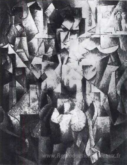 Nous vous proposons une reproduction artisanale sur toile du célèbre tableau 'Nu à la cheminée' de Jean Metzinger, provenant du Musée de la Reproduction.