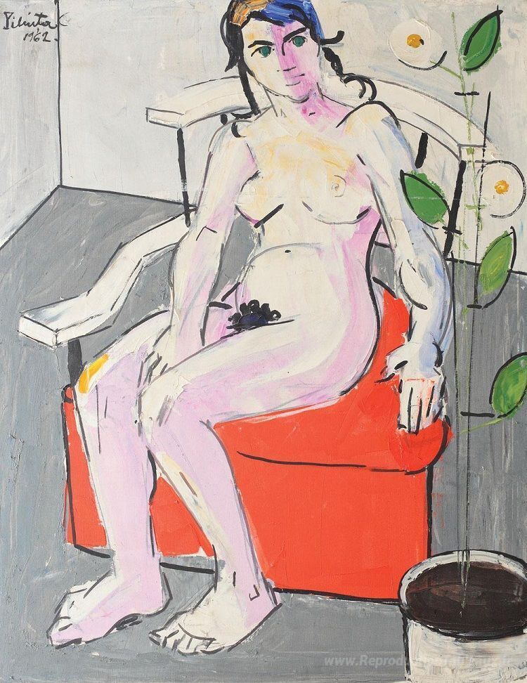 Nous vous proposons une reproduction artisanale sur toile du célèbre tableau 'Nu avec fleur' de Constantin Piliuta, provenant du Musée de la Reproduction.