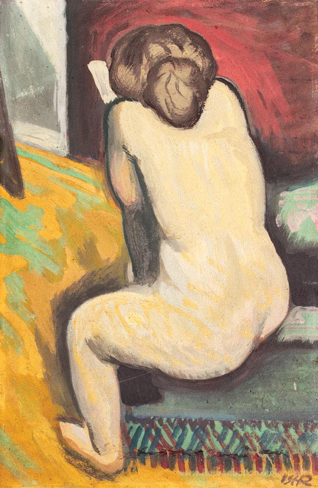 Nous vous proposons une reproduction artisanale sur toile du célèbre tableau 'Nu avec livre' de Iosif Iser, provenant du Musée de la Reproduction.