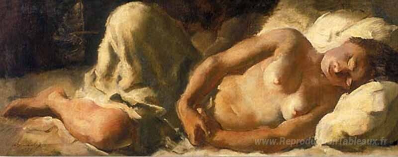 Nous vous proposons une reproduction artisanale sur toile du célèbre tableau 'Nu dormant' de Alexandre Jacovleff, provenant du Musée de la Reproduction.