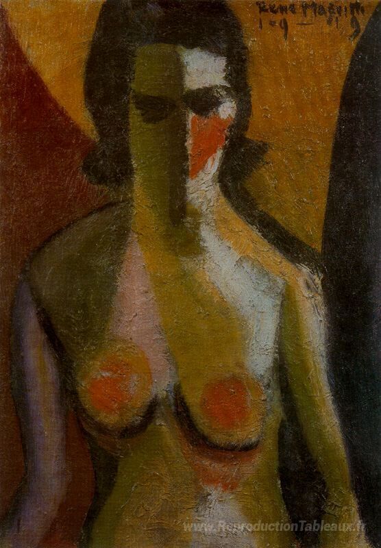 Nous vous proposons une reproduction artisanale sur toile du célèbre tableau 'Nu' de Rene Magritte, provenant du Musée de la Reproduction.