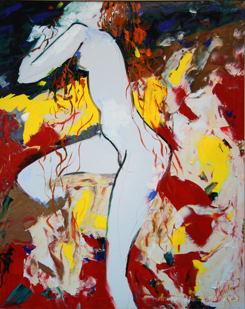 Nous vous proposons une reproduction artisanale sur toile du célèbre tableau 'Nu' de Romul Nutiu, provenant du Musée de la Reproduction.
