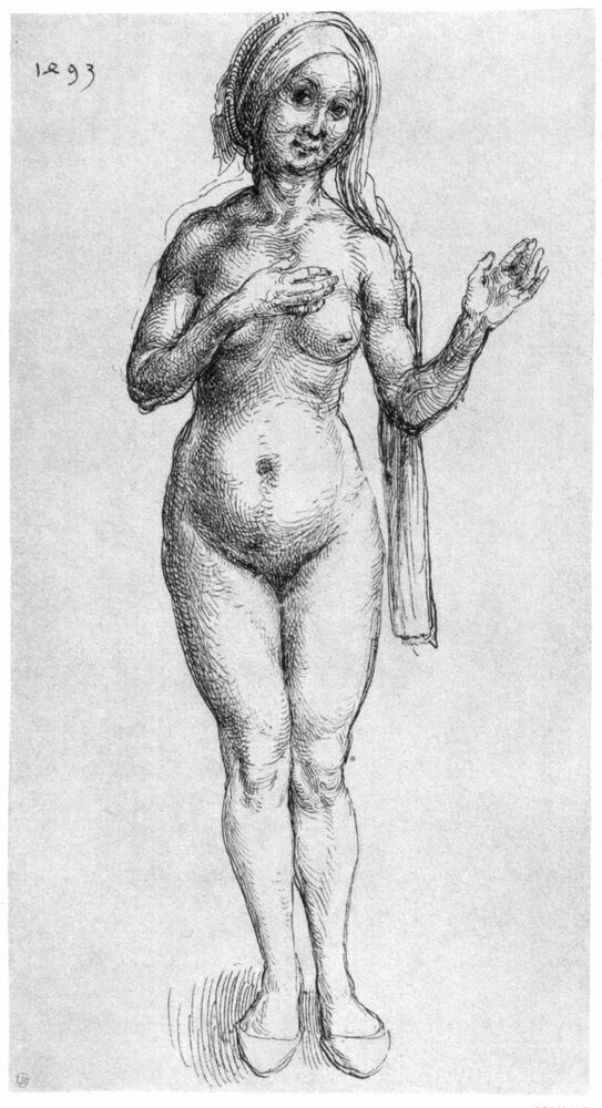 Nous vous proposons une reproduction artisanale sur toile du célèbre tableau 'Nu' de Albrecht Durer, provenant du Musée de la Reproduction.