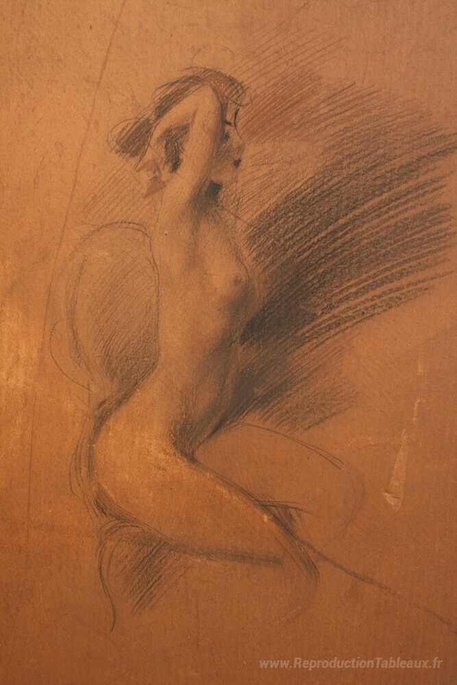 Nous vous proposons une reproduction artisanale sur toile du célèbre tableau 'Nu' de Giovanni Boldini, provenant du Musée de la Reproduction.