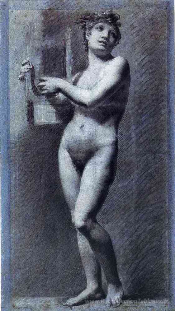 Nous vous proposons une reproduction artisanale sur toile du célèbre tableau 'Nude féminine - poésie' de Pierre-Paul Prud'hon, provenant du Musée de la Reproduction.