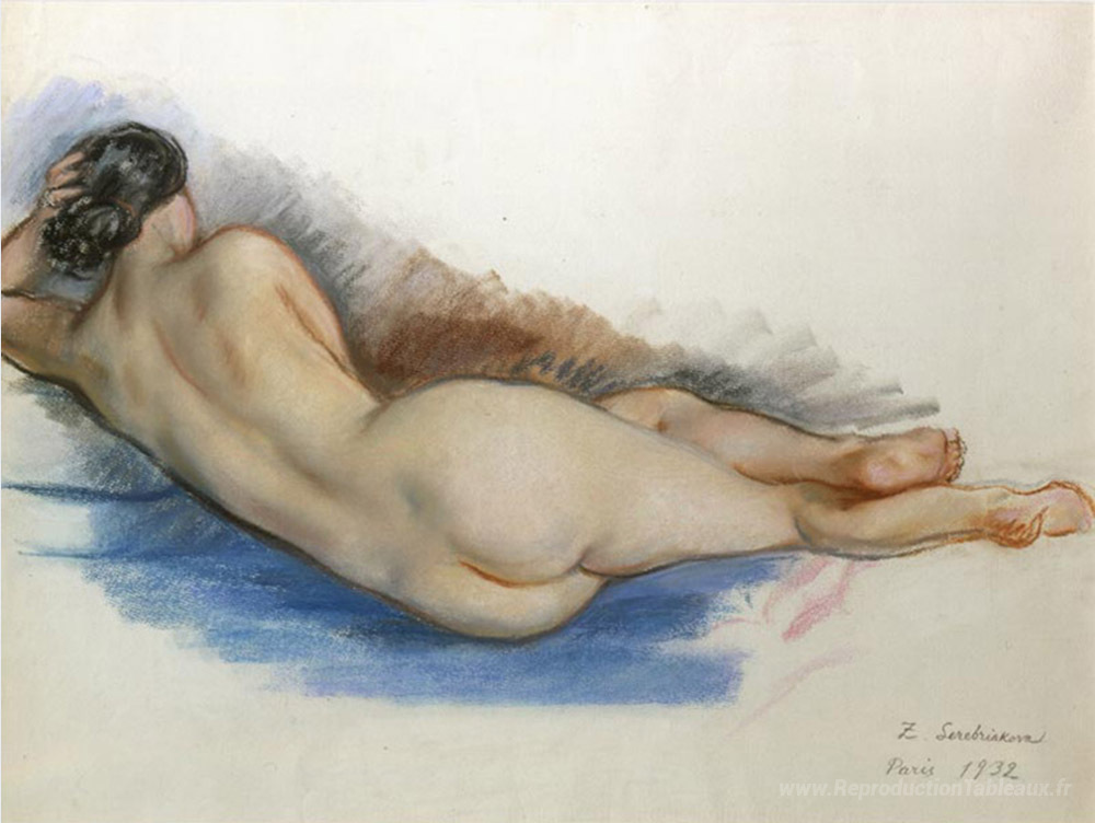 Nous vous proposons une reproduction artisanale sur toile du célèbre tableau 'Nue' de Zinaida Serebriakova, provenant du Musée de la Reproduction.