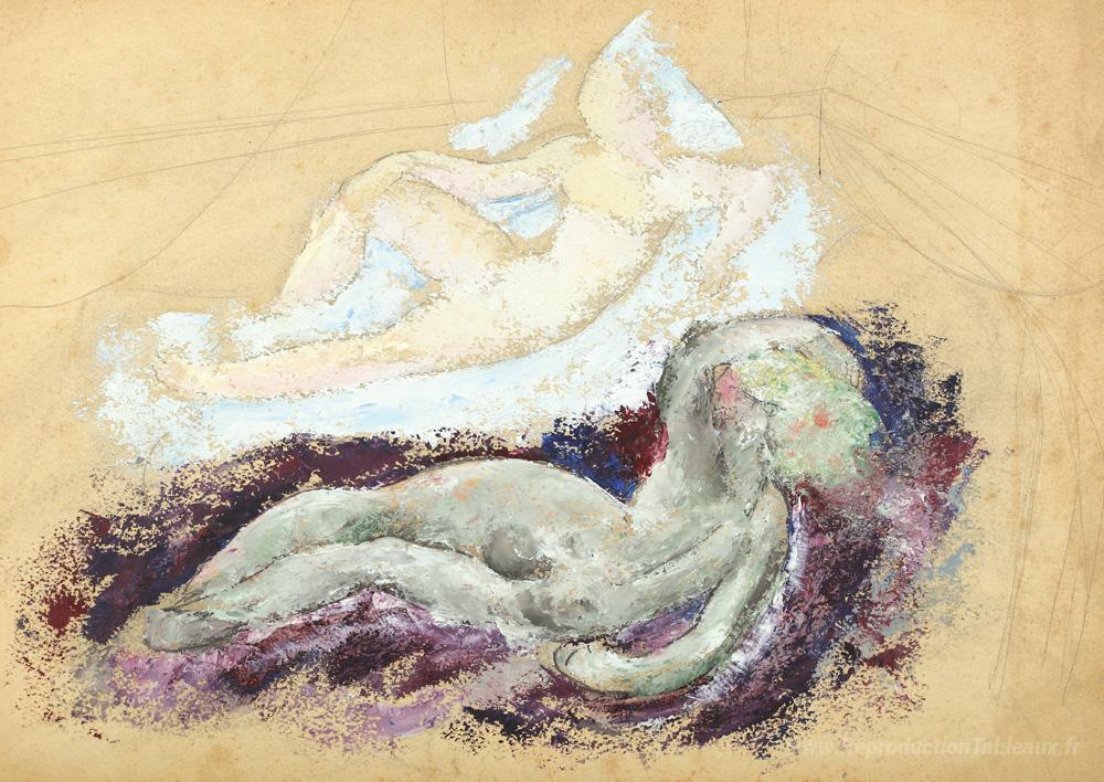 Nous vous proposons une reproduction artisanale sur toile du célèbre tableau 'Nuit et jour' de Medi Wechsler Dinu, provenant du Musée de la Reproduction.