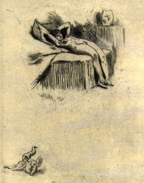 Nous vous proposons une reproduction artisanale sur toile du célèbre tableau 'Petit modèle' de Felicien Rops, provenant du Musée de la Reproduction.