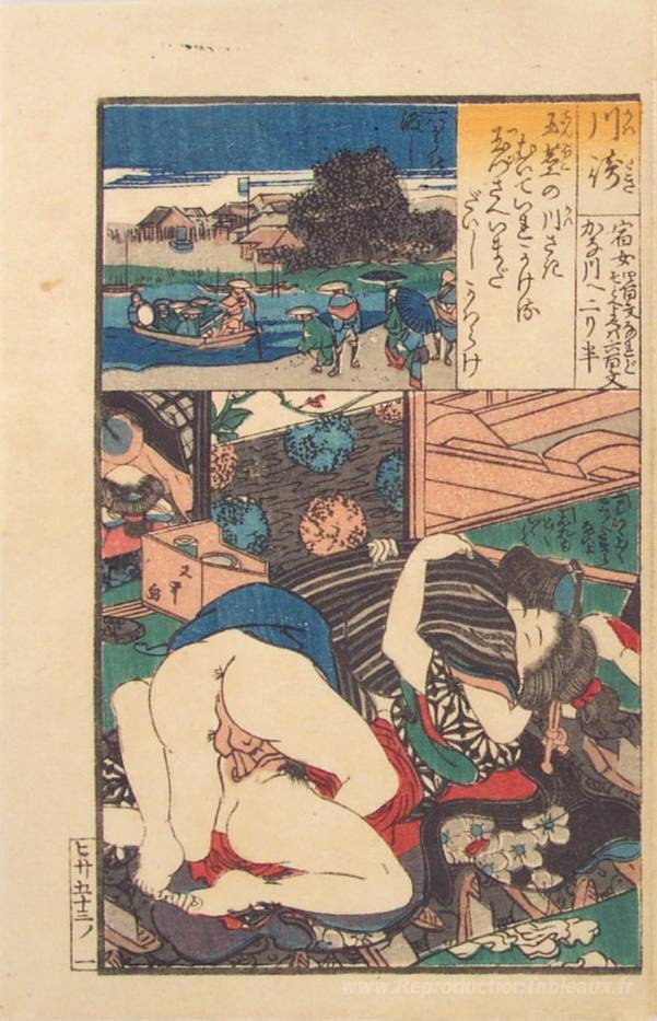 Nous vous proposons une reproduction artisanale sur toile du célèbre tableau 'Tokaido 53 stations, station n ° 2, Shinagawa' de Utagawa Kunisada, provenant du Musée de la Reproduction.