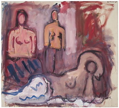 Nous vous proposons une reproduction artisanale sur toile du célèbre tableau 'Trois femmes' de Robert De Niro, Sr., provenant du Musée de la Reproduction.
