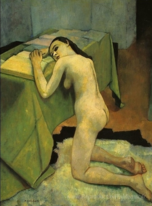 Nous vous proposons une reproduction artisanale sur toile du célèbre tableau 'Vocazione' de Felice Casorati, provenant du Musée de la Reproduction.