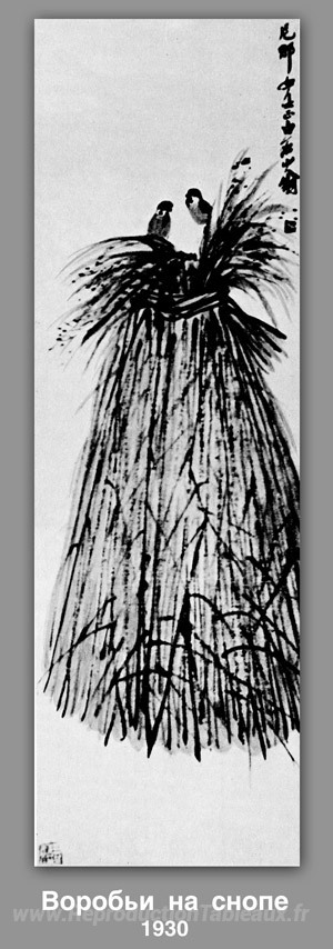 Nous vous proposons une reproduction artisanale sur toile du célèbre tableau 'Moiffures dans l'agence' de Qi Baishi, provenant du Musée de la Reproduction.