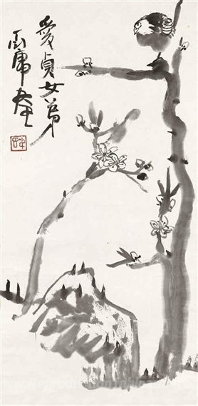 Nous vous proposons une reproduction artisanale sur toile du célèbre tableau 'Oiseau et fleurs' de Ding Yanyong, provenant du Musée de la Reproduction.