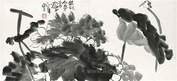 Nous vous proposons une reproduction artisanale sur toile du célèbre tableau 'Oiseau et lotus' de Ding Yanyong, provenant du Musée de la Reproduction.