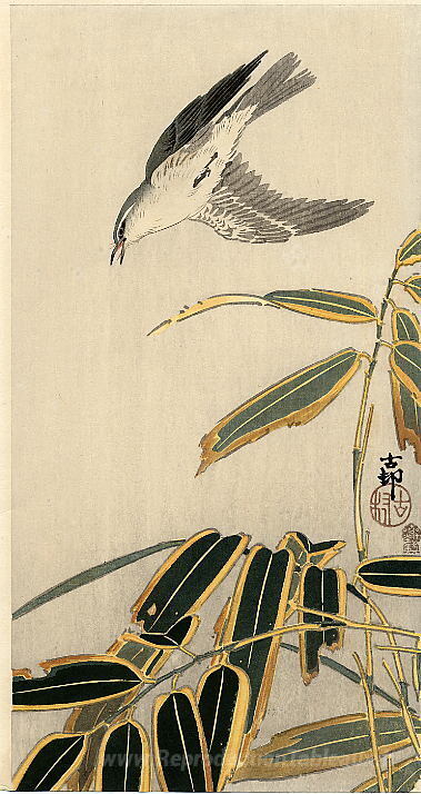 Nous vous proposons une reproduction artisanale sur toile du célèbre tableau 'Water et bambou' de Ohara Koson, provenant du Musée de la Reproduction.
