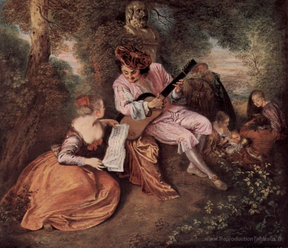 Nous vous proposons une reproduction artisanale sur toile du célèbre tableau 'L'échelle de l'amour' de Antoine Watteau, provenant du Musée de la Reproduction.