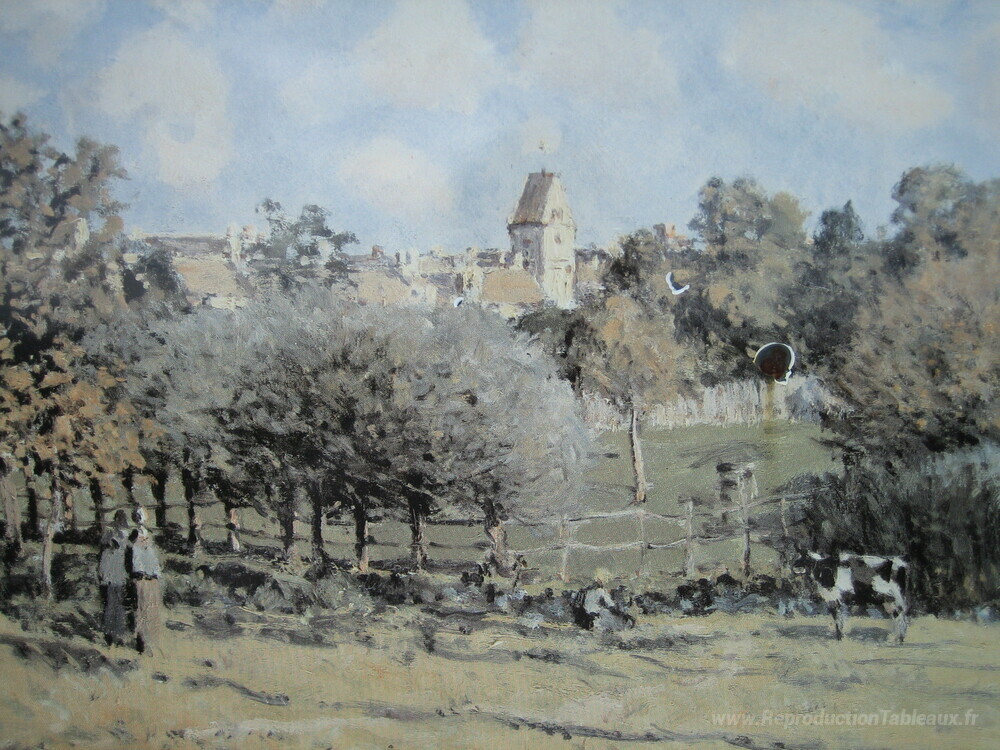 Nous vous proposons une reproduction artisanale sur toile du célèbre tableau 'Église Saint-Lubin' de Alfred Sisley, provenant du Musée de la Reproduction.