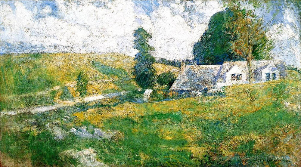 Nous vous proposons une reproduction artisanale sur toile du célèbre tableau 'Été' de John Henry Twachtman, provenant du Musée de la Reproduction.