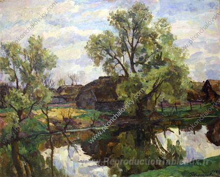 Nous vous proposons une reproduction artisanale sur toile du célèbre tableau 'Étang' de Pyotr Konchalovsky, provenant du Musée de la Reproduction.