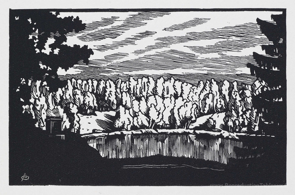 Nous vous proposons une reproduction artisanale sur toile du célèbre tableau 'Étang rond' de Anna Ostroumova-Lebedeva, provenant du Musée de la Reproduction.