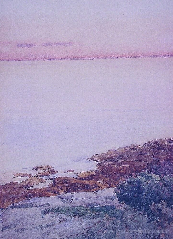 Nous vous proposons une reproduction artisanale sur toile du célèbre tableau 'Îles de Shoals' de Childe Hassam, provenant du Musée de la Reproduction.