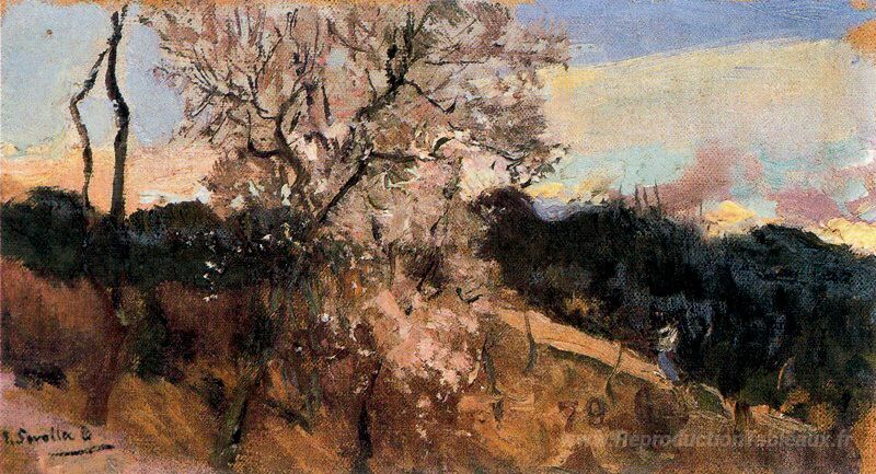 Nous vous proposons une reproduction artisanale sur toile du célèbre tableau 'Amandes en ASIS' de Joaquín Sorolla, provenant du Musée de la Reproduction.