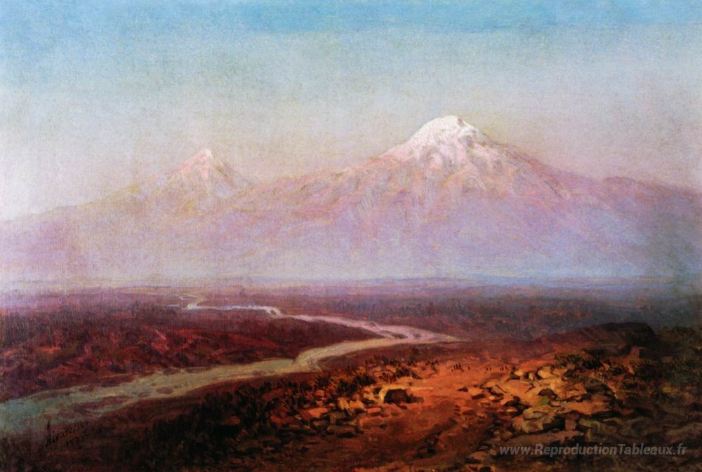 Nous vous proposons une reproduction artisanale sur toile du célèbre tableau 'Araks River et Ararat' de Ivan Aivazovsky, provenant du Musée de la Reproduction.