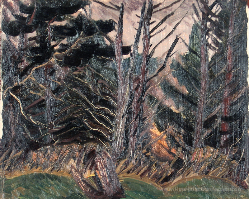 Nous vous proposons une reproduction artisanale sur toile du célèbre tableau 'Arbres morts' de Jack Bush, provenant du Musée de la Reproduction.