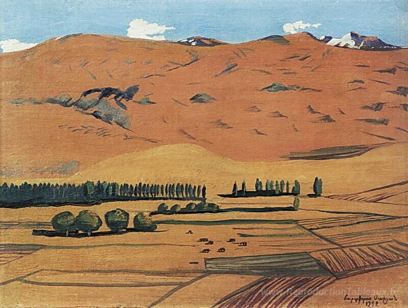 Nous vous proposons une reproduction artisanale sur toile du célèbre tableau 'Arménie' de Martiros Saryan, provenant du Musée de la Reproduction.