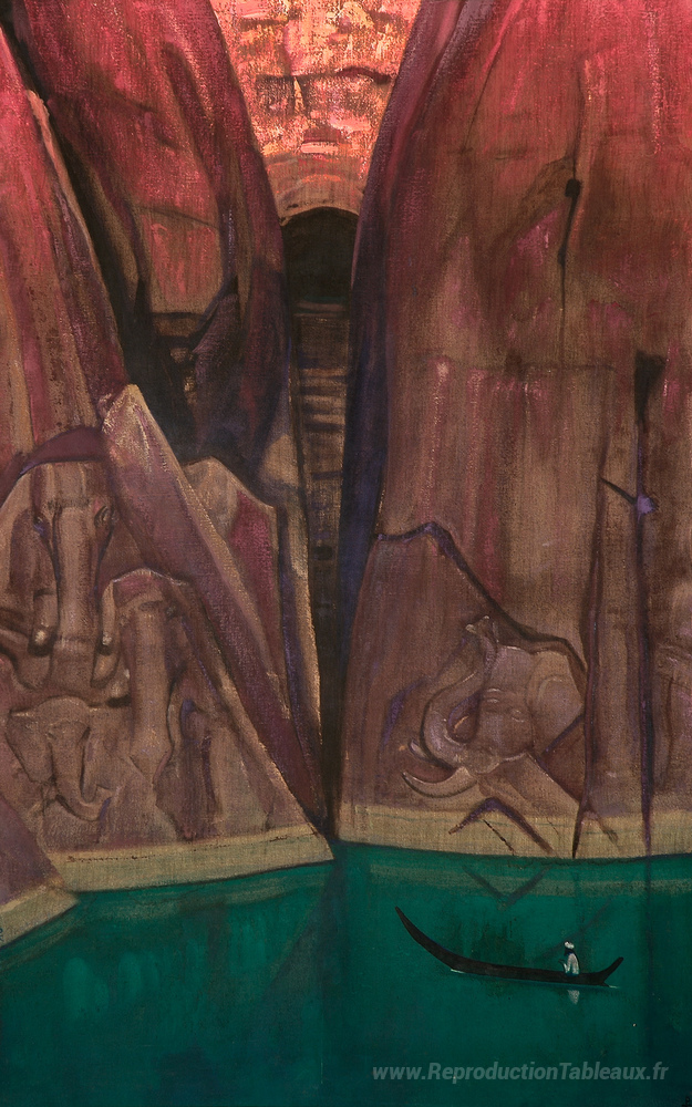 Nous vous proposons une reproduction artisanale sur toile du célèbre tableau 'Ashram' de Nicholas Roerich, provenant du Musée de la Reproduction.