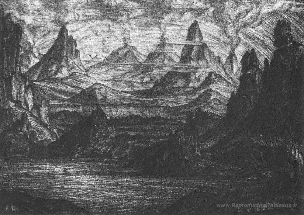 Nous vous proposons une reproduction artisanale sur toile du célèbre tableau 'Atlantide' de Konstantin Bogaevsky, provenant du Musée de la Reproduction.