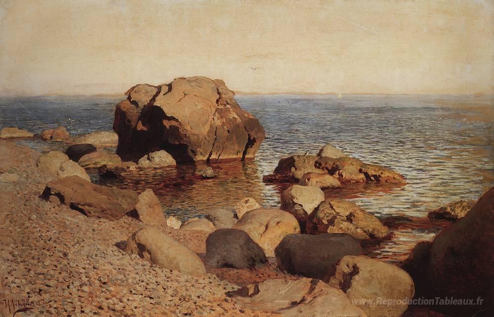 Nous vous proposons une reproduction artisanale sur toile du célèbre tableau 'Au bord de la mer' de Isaac Levitan, provenant du Musée de la Reproduction.