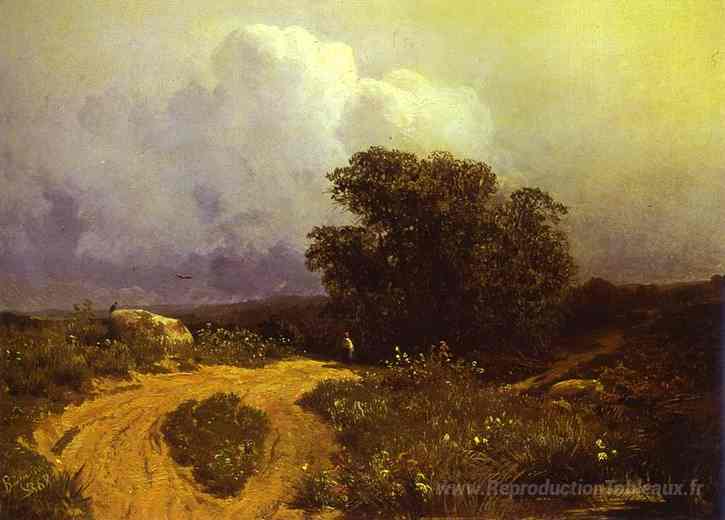 Nous vous proposons une reproduction artisanale sur toile du célèbre tableau 'Avant un orage' de Fyodor Vasilyev, provenant du Musée de la Reproduction.