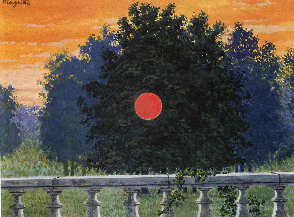 Nous vous proposons une reproduction artisanale sur toile du célèbre tableau 'Banchetto' de Rene Magritte, provenant du Musée de la Reproduction.