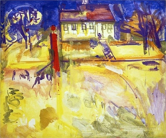 Nous vous proposons une reproduction artisanale sur toile du célèbre tableau 'Banlieue' de Hans Hofmann, provenant du Musée de la Reproduction.
