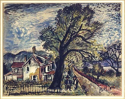 Nous vous proposons une reproduction artisanale sur toile du célèbre tableau 'Bayville' de David Burliuk, provenant du Musée de la Reproduction.
