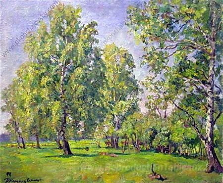 Nous vous proposons une reproduction artisanale sur toile du célèbre tableau 'Birch au début du printemps' de Pyotr Konchalovsky, provenant du Musée de la Reproduction.