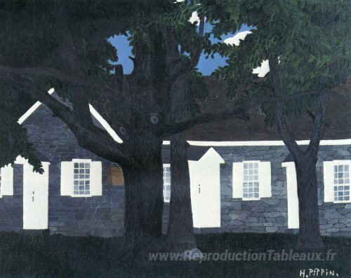 Nous vous proposons une reproduction artisanale sur toile du célèbre tableau 'Birmingham Meeting House III' de Horace Pippin, provenant du Musée de la Reproduction.
