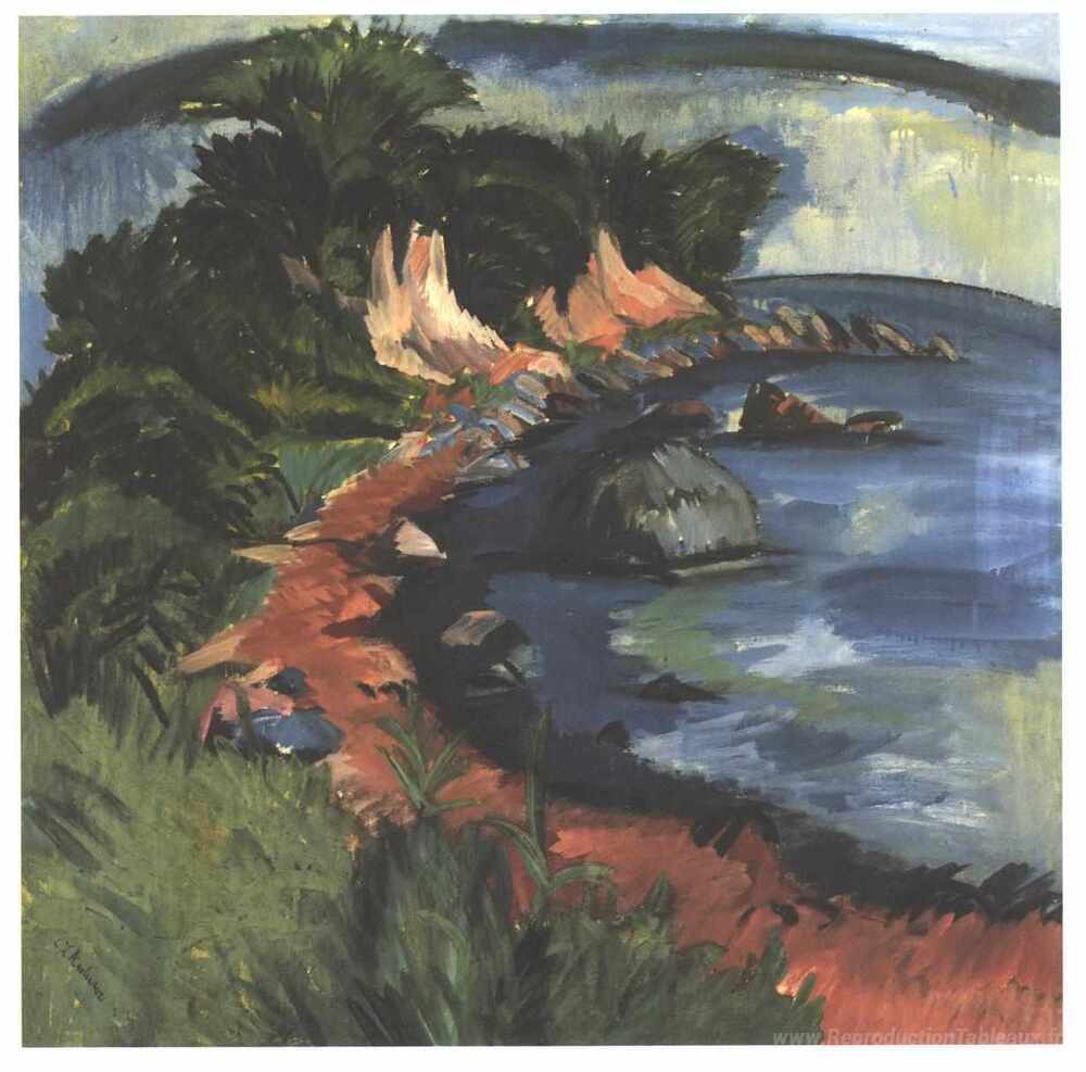 Nous vous proposons une reproduction artisanale sur toile du célèbre tableau 'Côte de Fehmarn' de Ernst Ludwig Kirchner, provenant du Musée de la Reproduction.