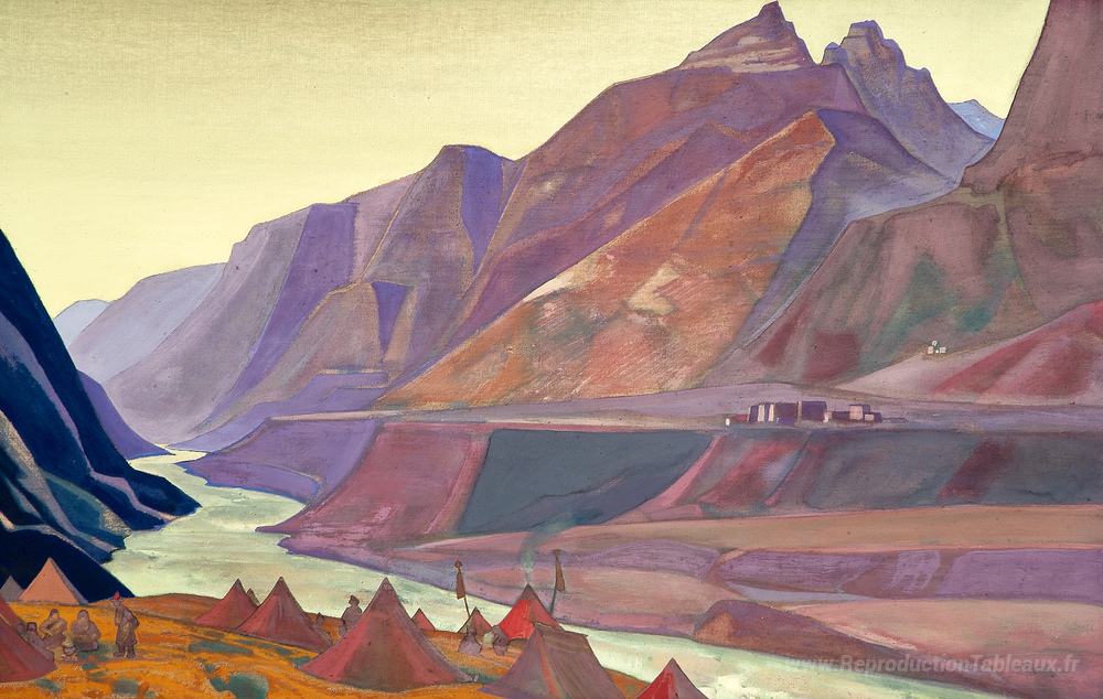 Nous vous proposons une reproduction artisanale sur toile du célèbre tableau 'Camp de Koksar' de Nicholas Roerich, provenant du Musée de la Reproduction.