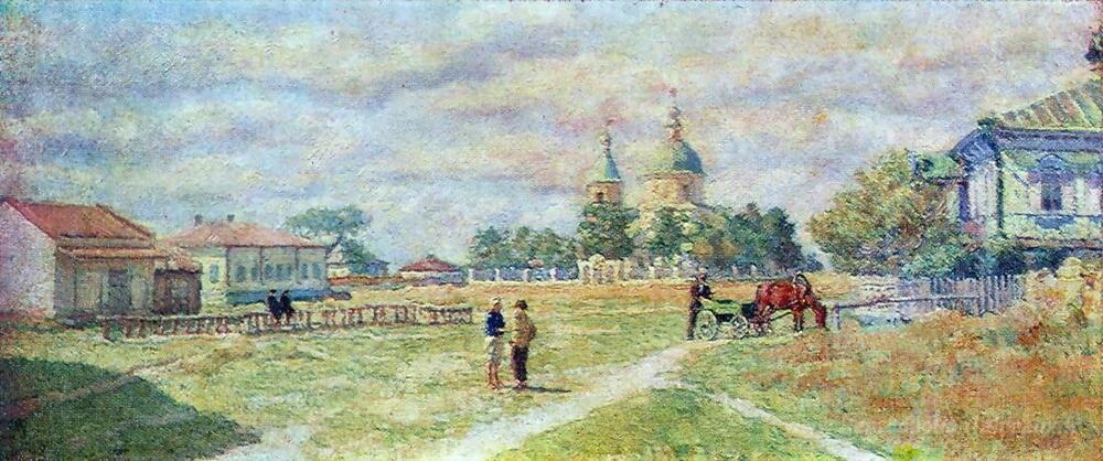 Nous vous proposons une reproduction artisanale sur toile du célèbre tableau 'Carré dans le village Mikhailovskaya' de Ilya Mashkov, provenant du Musée de la Reproduction.
