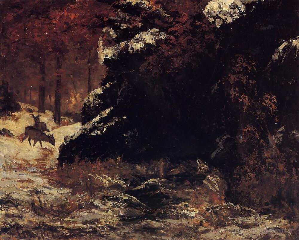 Nous vous proposons une reproduction artisanale sur toile du célèbre tableau 'Cerf dans la neige' de Gustave Courbet, provenant du Musée de la Reproduction.