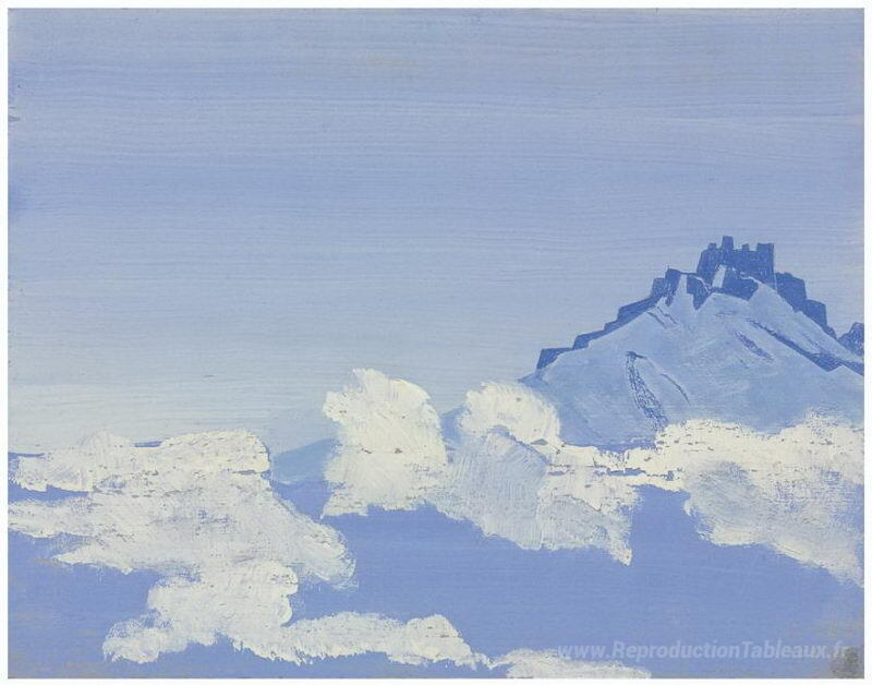 Nous vous proposons une reproduction artisanale sur toile du célèbre tableau 'Châteaux du roi Gesar' de Nicholas Roerich, provenant du Musée de la Reproduction.