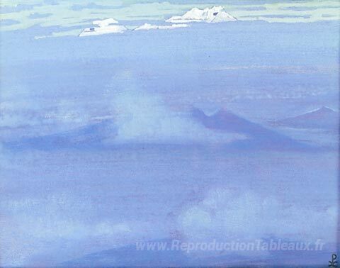 Nous vous proposons une reproduction artisanale sur toile du célèbre tableau 'Châteaux du roi Gesar' de Nicholas Roerich, provenant du Musée de la Reproduction.