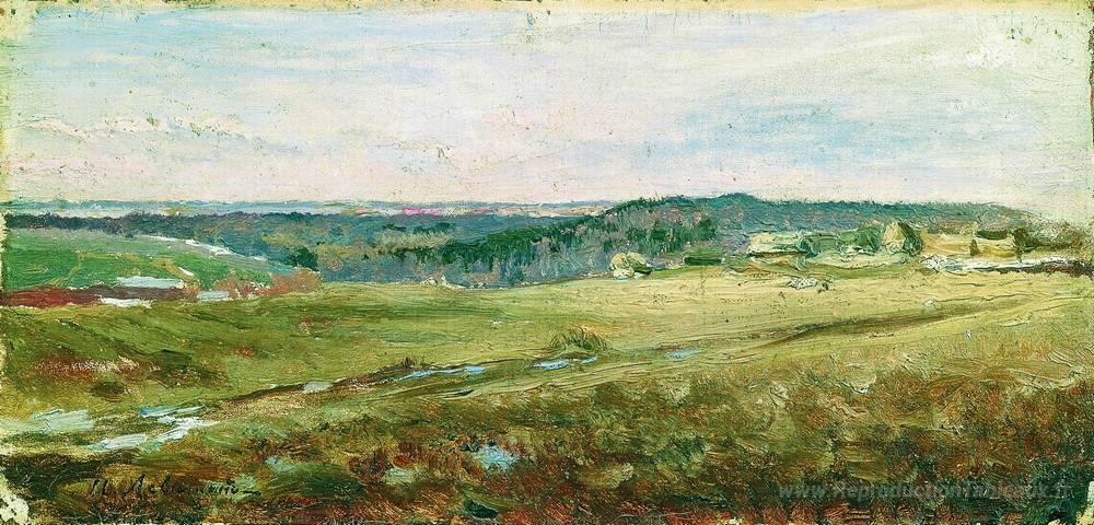 Nous vous proposons une reproduction artisanale sur toile du célèbre tableau 'Champ' de Isaac Levitan, provenant du Musée de la Reproduction.