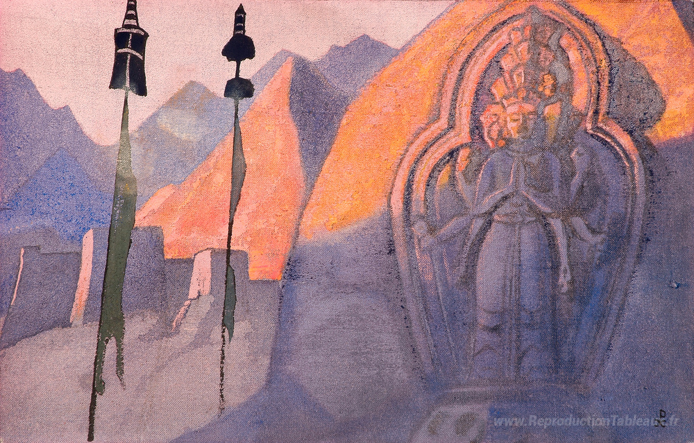 Nous vous proposons une reproduction artisanale sur toile du célèbre tableau 'Chenrezig' de Nicholas Roerich, provenant du Musée de la Reproduction.