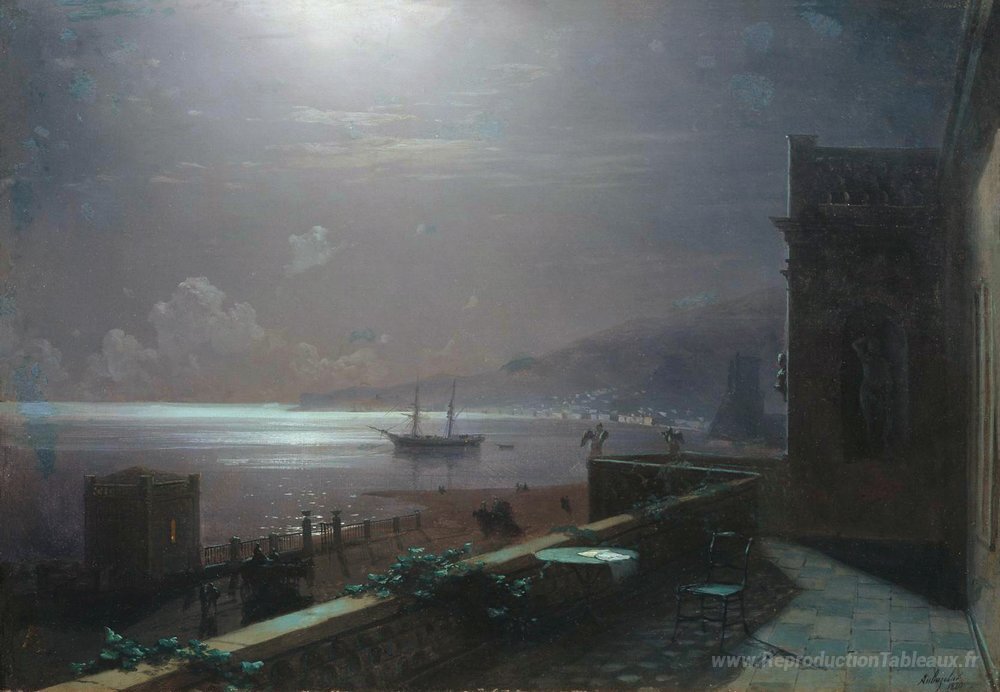 Nous vous proposons une reproduction artisanale sur toile du célèbre tableau 'Clair de lune en feodosie' de Ivan Aivazovsky, provenant du Musée de la Reproduction.