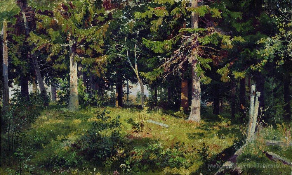 Nous vous proposons une reproduction artisanale sur toile du célèbre tableau 'Claitement dans la forêt' de Ivan Shishkin, provenant du Musée de la Reproduction.