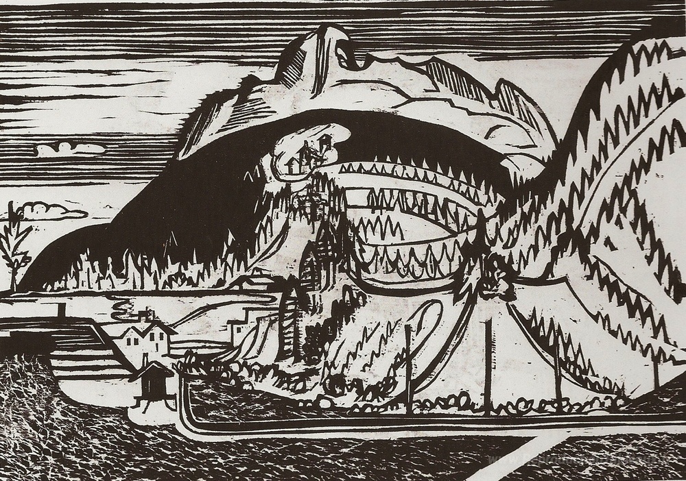 Nous vous proposons une reproduction artisanale sur toile du célèbre tableau 'Clavadel Mountain vu de Frauenkirch' de Ernst Ludwig Kirchner, provenant du Musée de la Reproduction.
