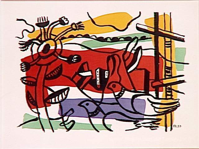Nous vous proposons une reproduction artisanale sur toile du célèbre tableau 'Composition chez deux oiseaux (paysage avec des oiseaux)' de Fernand Leger, provenant du Musée de la Reproduction.